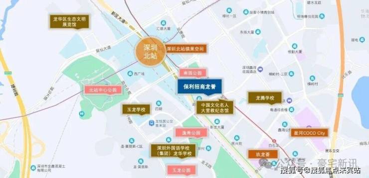 保利招商龙誉花园位于龙华区新区大道彩旺大厦东北侧及深圳北站附近,项目紧靠约6.1k㎡北站商务中心,总部商务新坐标。北站商务中心规划约60栋商务办公楼、约5-7个城市商业综合体、约6-9个四星级及以上酒店,计划引进20-30家大型总部企业及上市公司,还有6至9家四星级以上酒店,集聚25万商务精英,将打造城市会客厅。