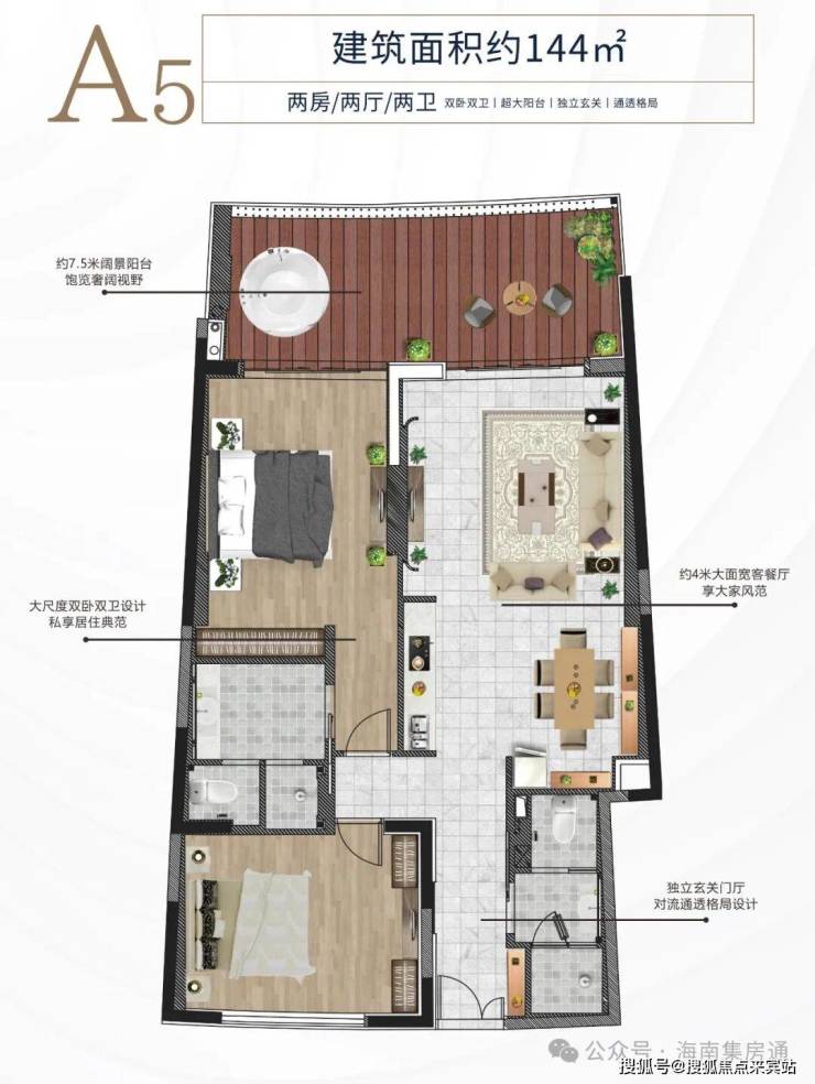 A5户型约144平方米 两房两厅两卫