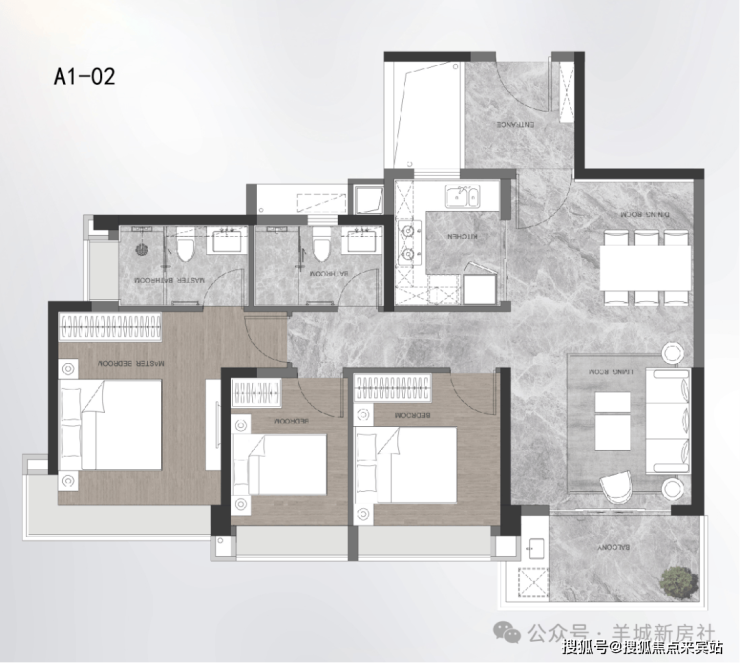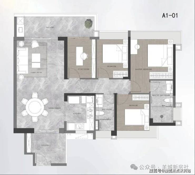 :约22㎡奢阔主卧,四开间东南向,LDKG一体化舒居空间,阅览城市天际线;