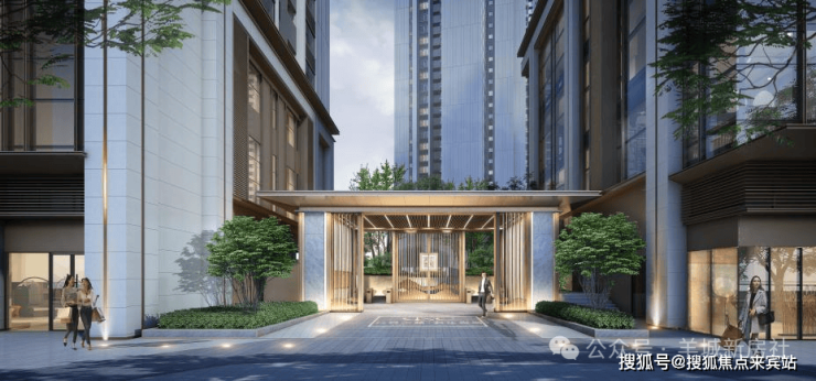 小区环境:新中式合院布局,星空门楼+下沉式庭院