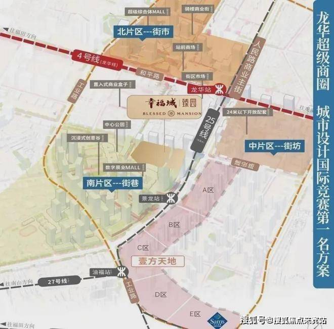 龙华超级商圈布局4号线(已通车)、25/22/27号线(在建中)四地铁线,地上二层风雨连廊衔接各个区域,实现二层连廊人行,地面车行,地下地铁和商业,将形成“站城一体、社群共荣、跨界交融”三大特点,营造“站城无界”出行体验。龙华超级商圈还规划了丰富的自然文娱配套,通过“商业+展览+生活”打造充满活力、亲近自然的高品质居住地。