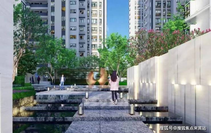 酒店式入户大门,景观跌水,180°中轴景观,错落有致的空间,让您置身于岭南山川流水中