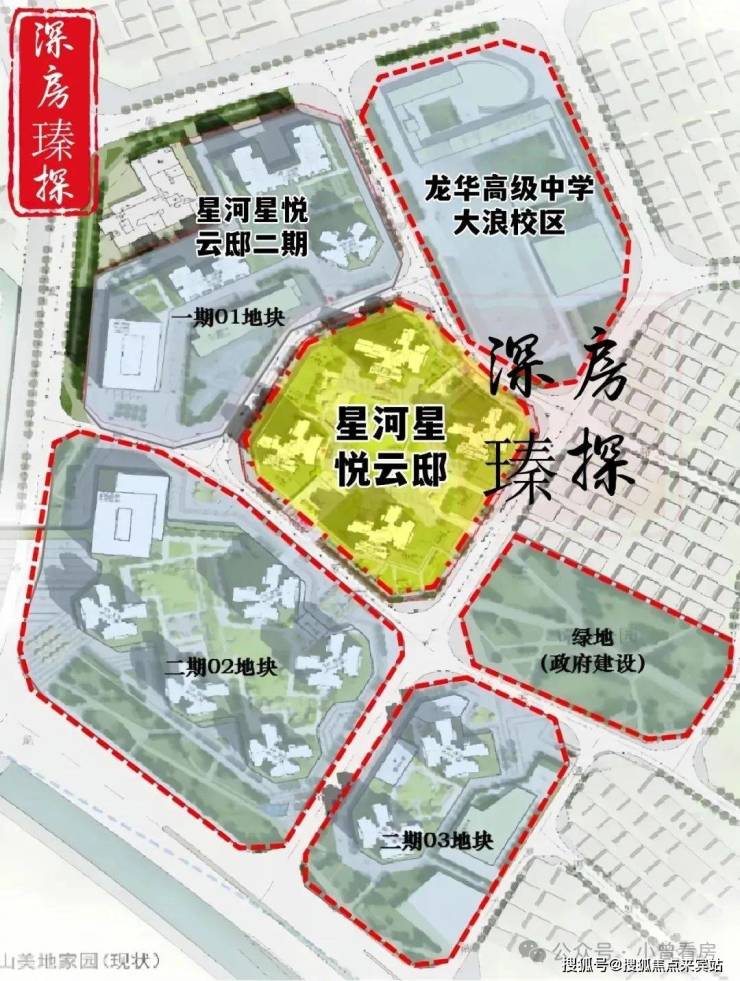 同时,星河·星悦云邸一期和二期地块,一路之隔分别是龙华高级中学大浪校区、政府建设的绿地公园。