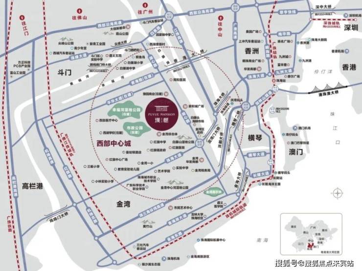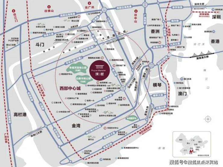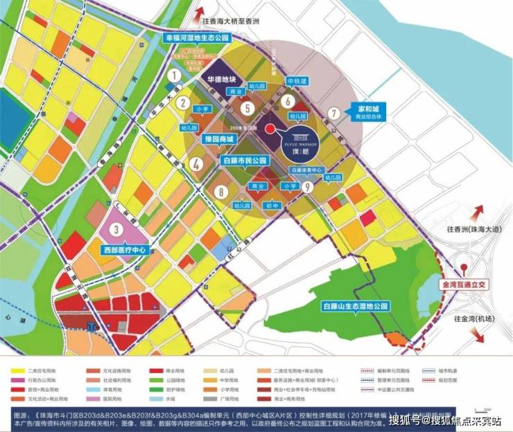 1. 香海大橋橋頭堡:香海大橋橋頭堡位置,經由香海大橋(預計2022年通車)快速往來新香洲及拱北。