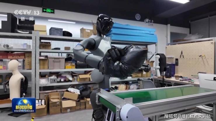 总台央视记者 张丛婧:这里正在模拟一个快递分拣的场景,此时机器人正在训练抓取包裹的力度,我们可以看一下包裹上面其实是有一些抓痕,这就是它的训练痕迹,现在这个机器人正在学习怎么去掌控自己的“手劲”。