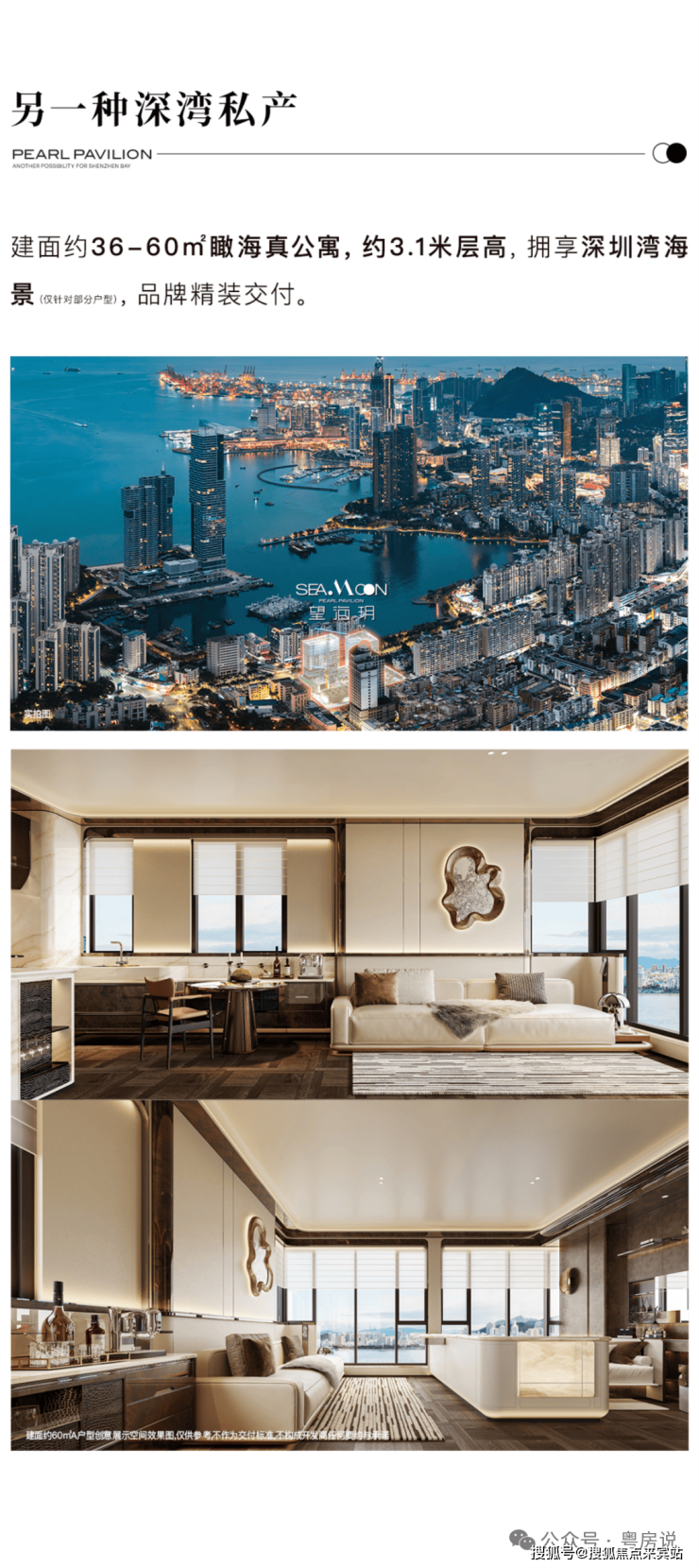 招商望海玥位于深圳市南山区蛇口新街与渔村路交汇处、距离地铁2/8号线东角头站267米;推出的是389套公寓产品、36--60平一至二房.