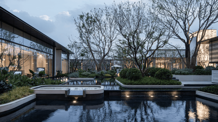 提取希腊爱琴海安缦酒店的岛居美学,整个园林把景观看做艺术品的创作和人文内涵的呈现,满足高端人群更高精神层面的需求。