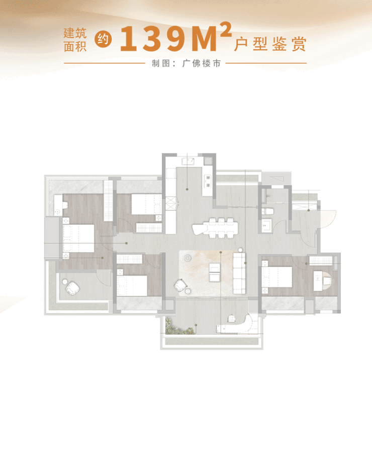 同样是项目爆款的建面约139㎡四房产品,赠送率高达26.77%(含景观阳台)!