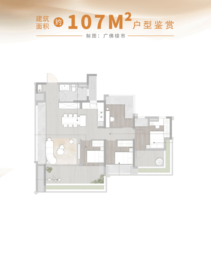 想要更为进阶的生活体验,建面约107m²四房户型,也是同样惊艳。