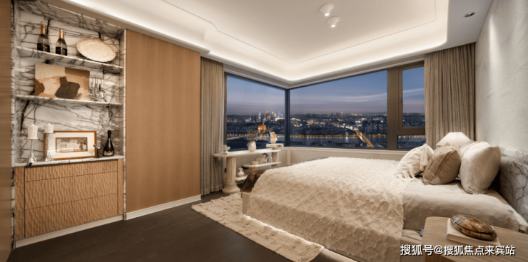 套房主卧270°宽幕落地窗+5.4米L型长转角飘窗,超大的采光面和空间感,放得下男主人的尊崇感,也能收藏女主人的所有“优雅”。