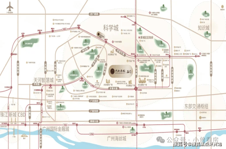 大壮名城位于黄埔区开泰大道与科丰路交汇处,正处在科学城核心的暹岗板块,周边聚集了不少高新技术企业和科研机构,居住氛围已经比较成熟。