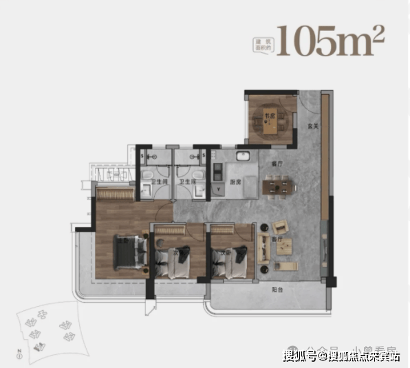 105㎡四房两卫是刚改家庭的热门选择,户型方正,做到了四开间大面宽,采光充足。这个户型空间布局灵活,其中一个房间可以改成书房或儿童游乐区,满足不同阶段的家庭需求。厨房操作空间充足,卫生间做了干湿分离,细节设计贴合日常使用习惯。目前总价在497万到582万之间,单价约4.7万/㎡起,对比同板块同面积段房源很有竞争力。