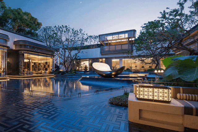 水景庭院将星月聚宝盆置于中间,寄托对未来生活的愿景。
