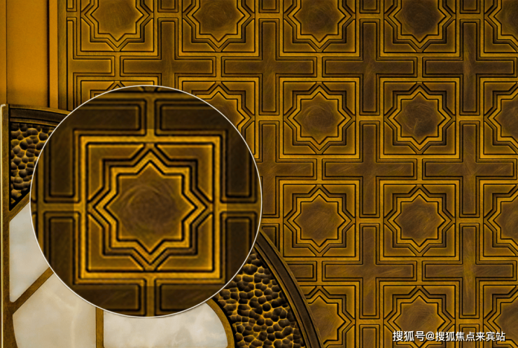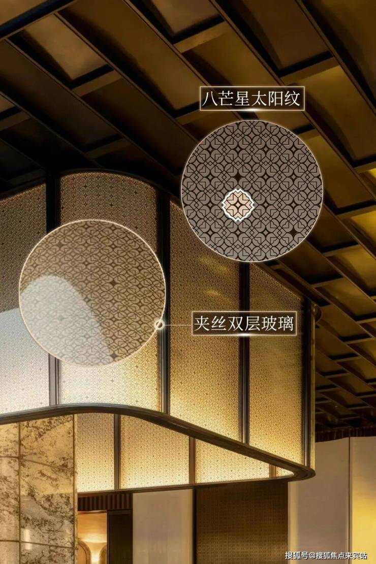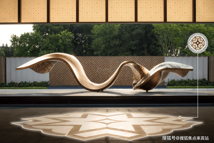 在保利天曜的重新演绎下,八芒星也演变成社区专属的超级符号,从地面拼花上的巨幅LOGO,到各种装饰、灯饰,几乎无处不在。