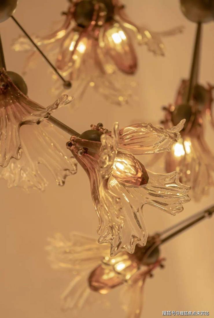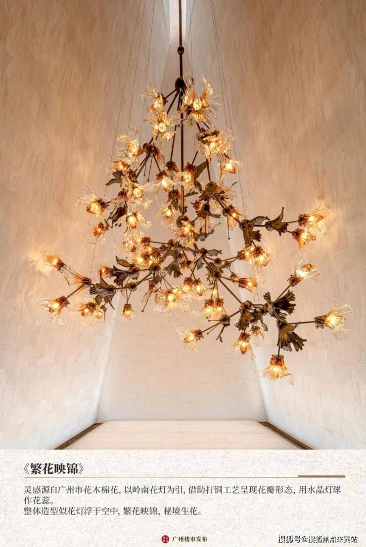 它以传统岭南花灯为引,将水晶灯内嵌作为花蕊,用打铜工艺呈现木棉花形态。