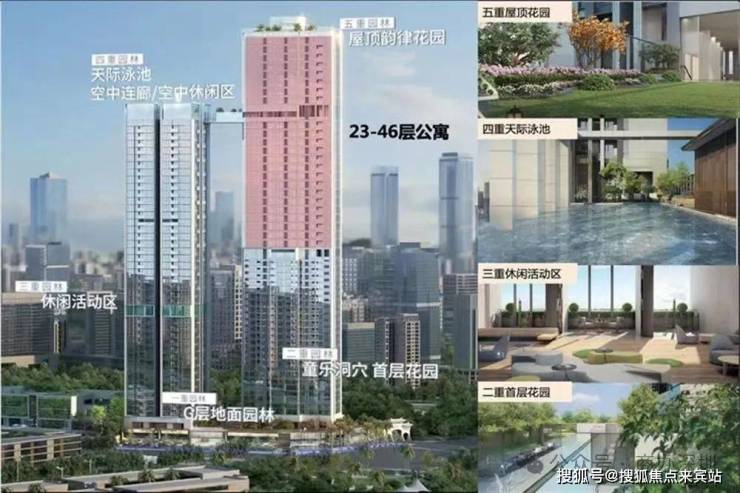 1栋:166米,2-4层为33-78平商业,5.1层高;23-46层是38-72平的约3.6米高商务公寓