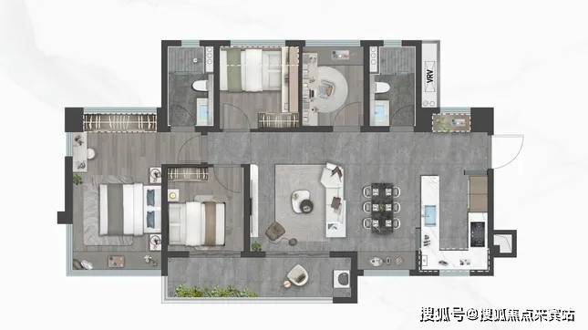 御雲:建面约80㎡三室两厅1.9卫,创新型1.9卫设计,臻享从容生活