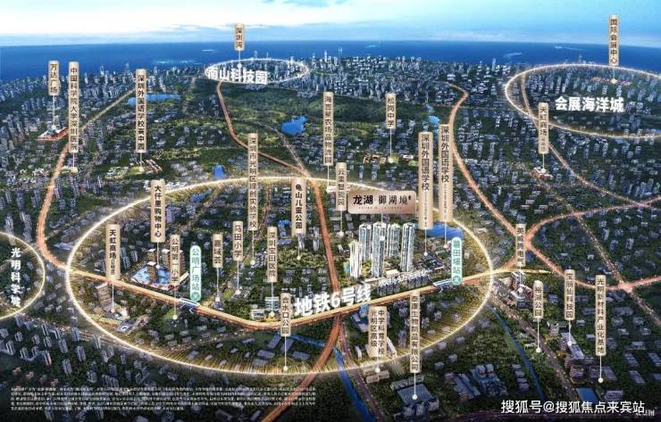 两大主脉串联“南山科技园+光明科学城+会展海洋城”三大黄金发展核,落子“光明经济发展轴”松白路和“深圳大动脉”南光高速的黄金交点,虹吸城市发展红利。3地铁+两经济主干道+10所优质学校+家楼下7.5万方商业+3大核心商超+6大公园