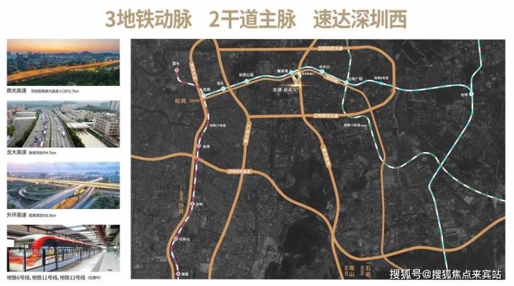 2大主干道:光明经济发展轴松白路在侧,贯穿全区;约1km瞬达南光高速入口,直达南山;