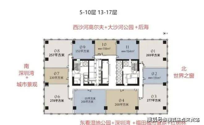 【5-10F/13-17F 118~278㎡ 6梯11户】