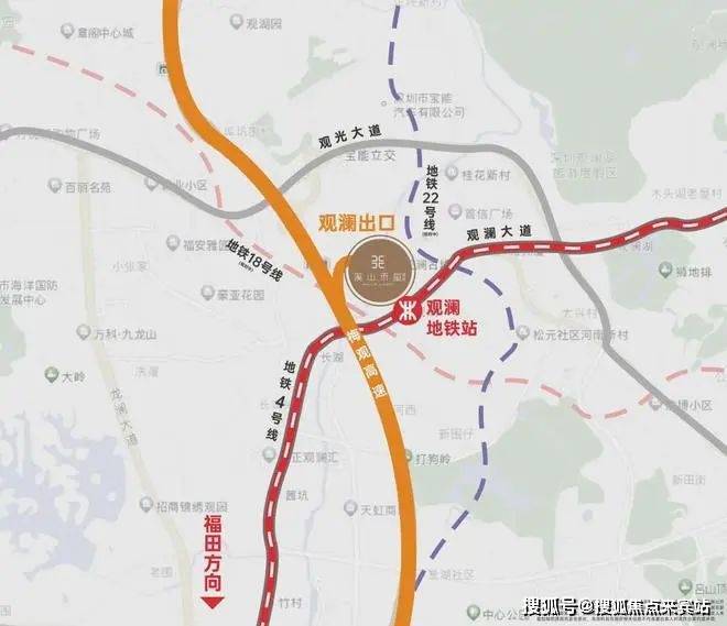 临近4号线观澜站,周边22号线(在建中),直达北站枢纽、福田CBD;紧邻梅观高速、龙华大道、观澜大道,快速通达全城。