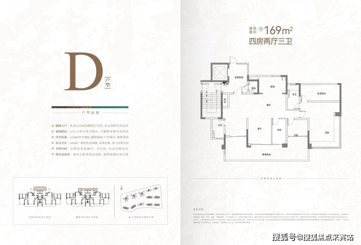 169㎡四房三卫户型则主打阔绰空间,南北双庭院设计