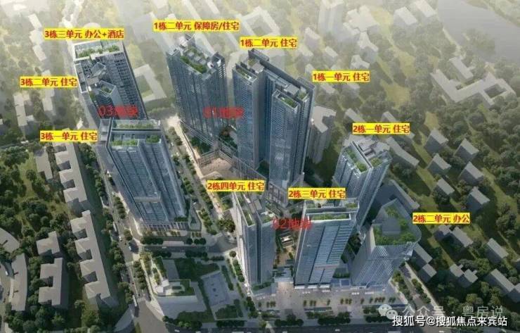 02地块规划3栋53层·、51层、53层超高层住宅(2栋一、三、四单元),以及1栋办公楼(2栋二单元),住宅、商业、办公及酒店为一体的大型综合项目。