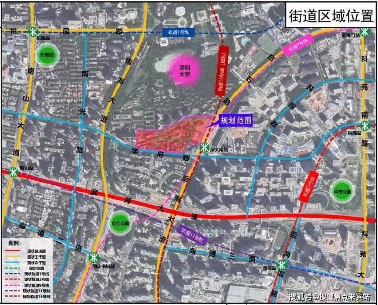 从位置上看,项目临近深大南站,9号线和已经在建15号线在此交汇。其中,地铁15号线串联前海湾、大铲湾、留仙洞总部基地、西丽交通枢纽、南山高新科技园等,是深圳最具有价值的一个圈。