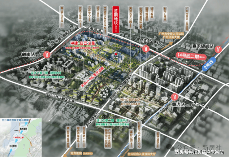 小区配套:约85万方恢弘大城,通过对设计之都板块生活配套的高效整合,聚集高端客群、促进产城融合,优化白云职住平衡;