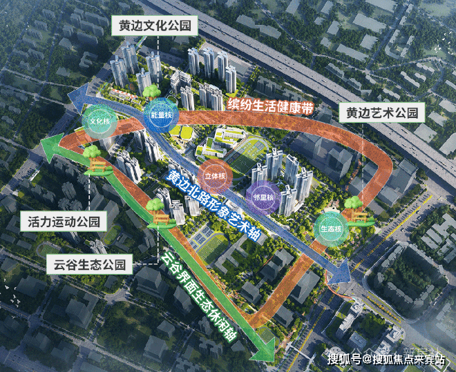 项目紧邻黄边艺术公园,未来将与黄边文化公园、活力运动公园、云谷生态公园四大主题公园相串联,形成自然与人文共生的活力空间。