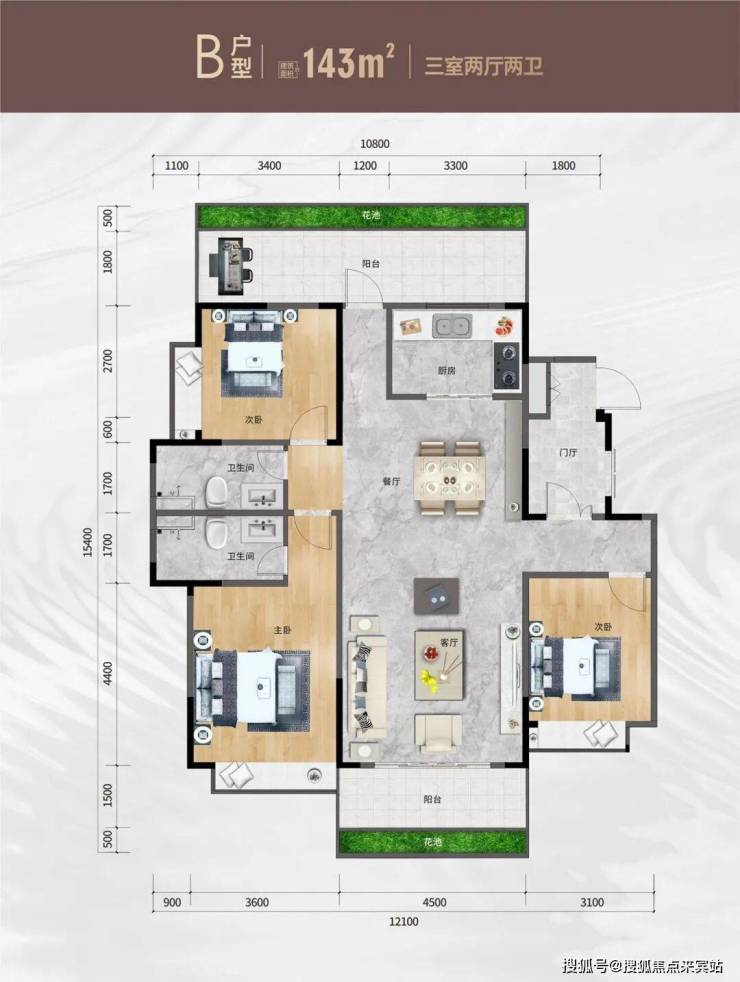 [明亮]南北双阳台,生活景观合理分区