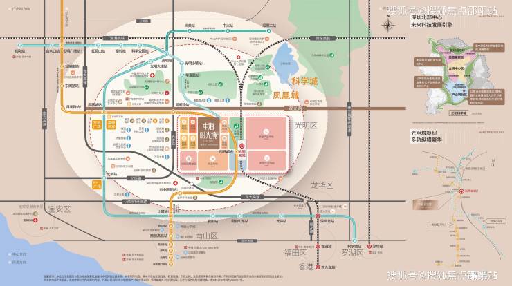 由西向东,串联起光明的房价“TOP梯队”小区、超级商圈、文化艺术展馆、网红公园,以及发展如火如荼的高铁TOD。