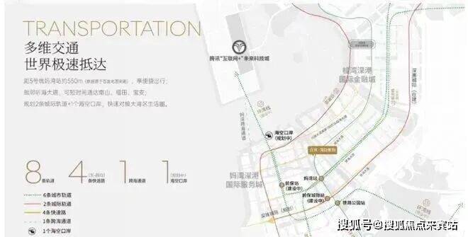 周边共规划6条地铁线、2条城际轨道、1条妈湾跨海隧道及1个海空口岸。距5号线妈湾站约550m,听海大道贯穿前海,可短时间通达南山、福田、宝安,快速链接大湾区生活圈。