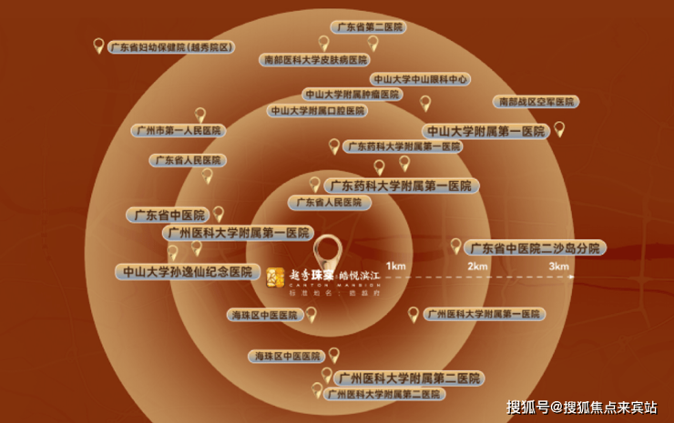享受广医一院二院,孙逸仙纪念医院、广州市十字会医院等号称“五分钟生命线”的老城医疗保障。同时3km范围可速达海珠、越秀多个重点医疗配套。