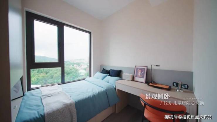 无论是儿童房,还是长辈房,都足够摆放1.5米床、书桌与衣柜,孩子学习、玩耍的区域依旧宽敞,低窗台设计方便老人观景,空间通透不压抑。