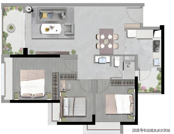 72㎡两房:优惠单价3.7-4.2万/㎡,优惠总价268-301万;