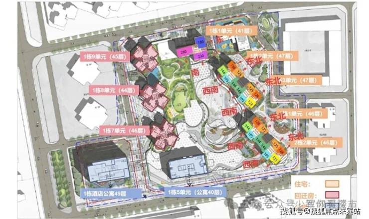项目住宅产品建设用地面积约 4.1 万㎡,计容建面约 29万㎡,容积率 7.03,规划机动停车 2681 辆。项目由5栋住宅(1#1、1#2、1#3,2#2、2#3)、1栋(1#4)保障房、3栋(1#6、1#7、1#8)回迁房组成、1栋(1#5)公寓组成。