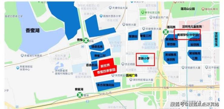 在教育配套方面,项目自带一所约3000㎡的9班制幼儿园,右侧是一所在建中的36班福田区人民小学,预计今年投入使用。根据24年学区划分,项目对应书包为福田景鹏小学、福田区荔园外国语小学(景田校区)和福田黄埔学校初中部。