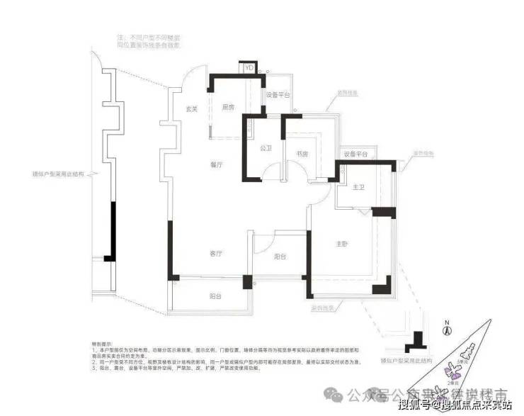 84㎡ 横厅三房:横厅布局增强空间感,全屋多飘窗,主卧套房设计,同样具备灵活改造空间。