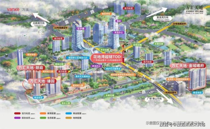 项目附近有花地湾TOD枢纽,1号线、25号线交汇换乘