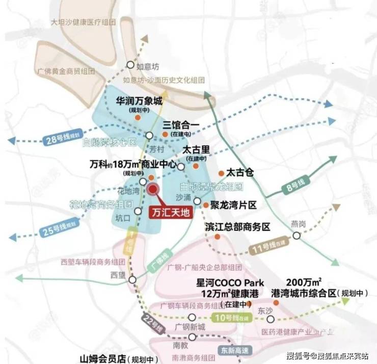 目前项目距离最近的地铁花地湾站约800米左右,步行需12分钟,1个站到达芳村TOD可换乘11、22号线地铁,11号线还是打通广州地铁线网的“换乘之王”,全线32个站点中,有26个为换乘站,16个与既有线路换乘