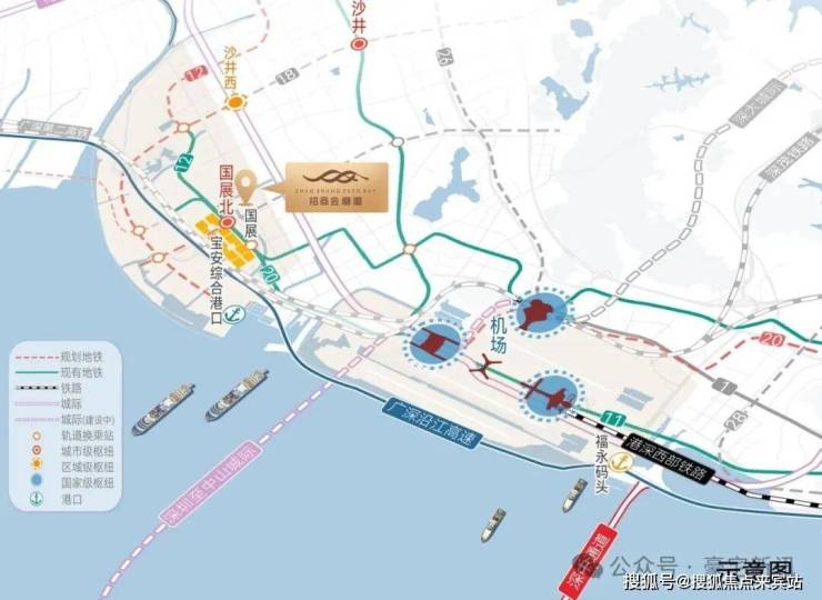 🛥海:直线距离约12公里达机场码头(旧称:福永码头),通达香港、澳门、中山。