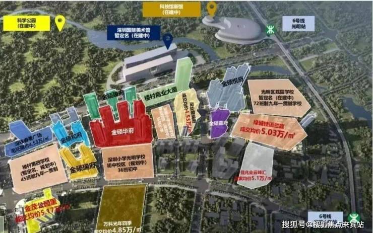 金硕臻府,由满京华集团开发,位于光明区光明中心区光辉大道与狮山三街交汇处,项目所在区域是光明规划最宜居,居住小区板块最大的片区,北侧靠近科学公园,东侧及南侧是深圳小学光明学校狮山校区及初中校区,距离最近的6号地铁线“光明站”约800米。