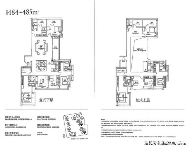 高区复式还有231-233㎡,354-358㎡,484-485㎡三个户型。