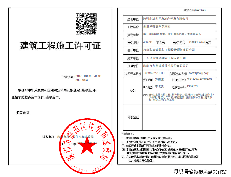 2022年6月22日,福田区城市更新和土地整备局发布关于公布新世界香蜜四季家园项目建设工程规划许可证及总平面图的公告。