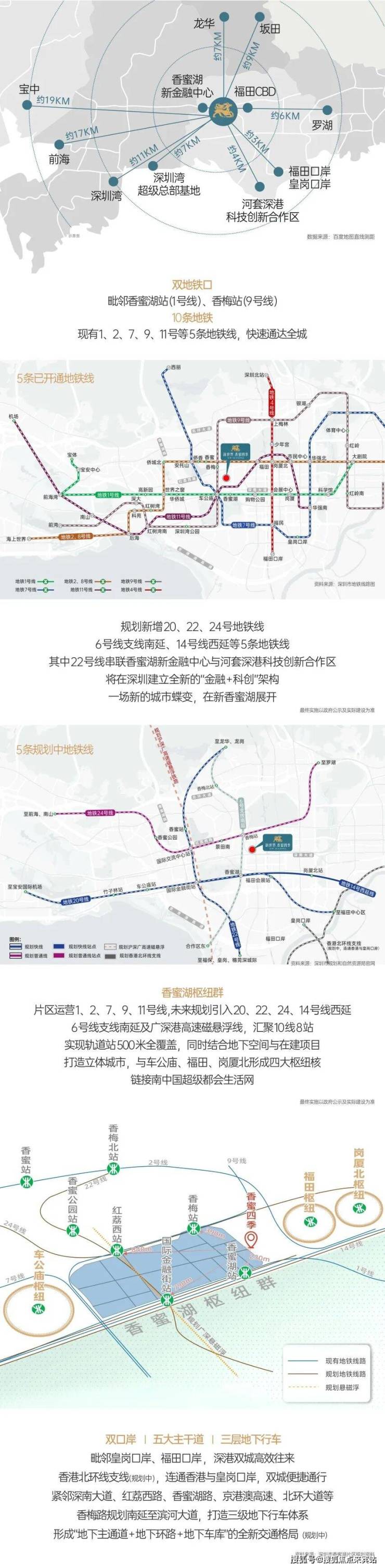 新世界香蜜四季家园目位于福田区香梅路与景田南路交汇处,处于地铁1号线香蜜湖站与9号线香梅站之间,距离两个地铁口的直线距离均在500米左右,属于双地铁口物业。距离市民中心约1.4公里,南侧是深圳高尔夫俱乐部,西侧是香蜜湖,地理位置非常优越。