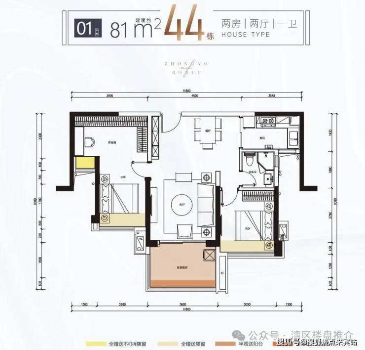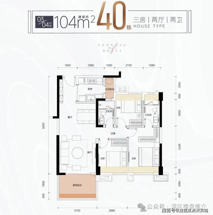 户型面积:40 / 41栋 104㎡(朝南) 118㎡(南北)