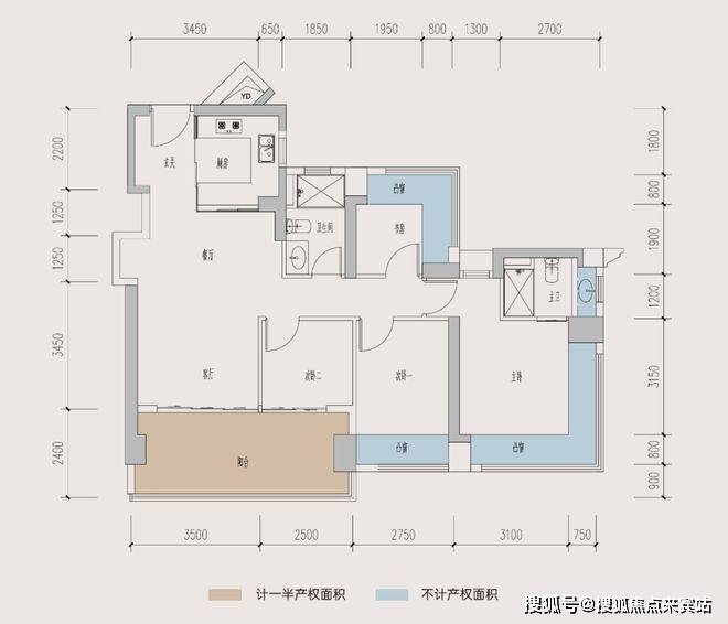 89㎡A户型,南北通透,客厅3.5米宽,五开间朝南,主卧双飘窗,可改四房,赠送面积约24.5㎡,得房率高达104.87%。