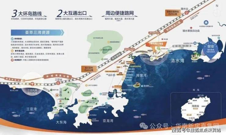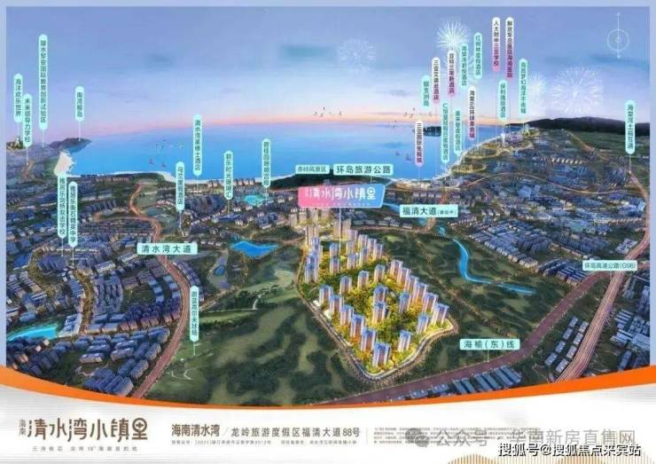 ️驾车至项目周边配套:️超5万方珊瑚汇广场、南果市场1公里,瀚海美食街3公里,雅都荟美食街8公里,蓝色港湾商业街8公里;️清水湾市政班车直达三亚及陵水动车站️贯穿园区的高规格双向六车道福清大道,连接椰州路以及椰林路直达免税店️距离土福湾出口约5公里️海棠湾免税店约9公里️海棠湾301医院约19公里️陵水动车站约22公里️距离三亚市区约40公里️到达海边约3公里到达🔟三亚凤凰机场约55公里