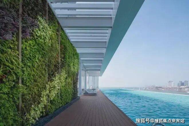湛蓝的池水在阳光下晶莹剔透,在无边际泳池旁享受无敌景色的同时亦可享用餐点并小酌一杯,全然又一处避世仙境。